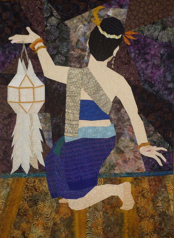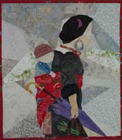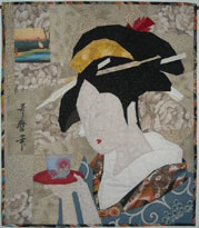 Geisha with Tea 27 x 31 inches ..(68 x 79 cm) Cotton fabric, cotton batting Machine pieced, machine quilted © 2012 Karen Sengel