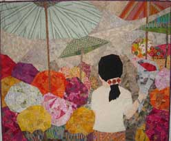 Waiting Out the Sun 31 x 36 inches ..(79 x 92 cm) Cotton fabric, hilltribe fabric, cotton batting Machine pieced, machine quilted © 2008 Karen Sengel