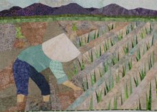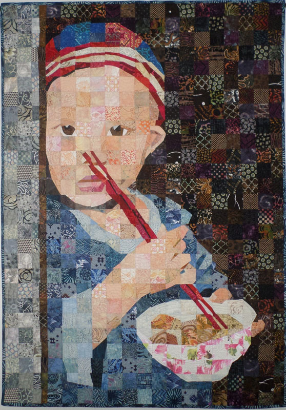 Boy with Rice 36 x 52 inches ..(92 x 132 cm) Cotton fabric, cotton batting Machine pieced, machine quilted © 2015 Karen Sengel