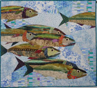 Fighting Fish 42 x 29 inches (108 x 74 cm) Cotton fabric, cotton batting Machine pieced, Machine quilted © 2016 Karen Sengel |