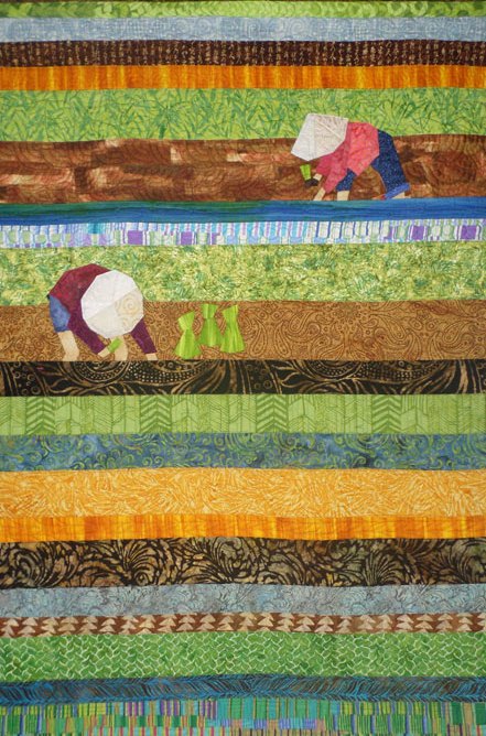 Misty Lao Morning 34 x 52 inches ..(87 x 132 cm) Cotton fabric, handmade fabric, cotton batting Machine pieced, machine quilted © 2013 Karen Sengel